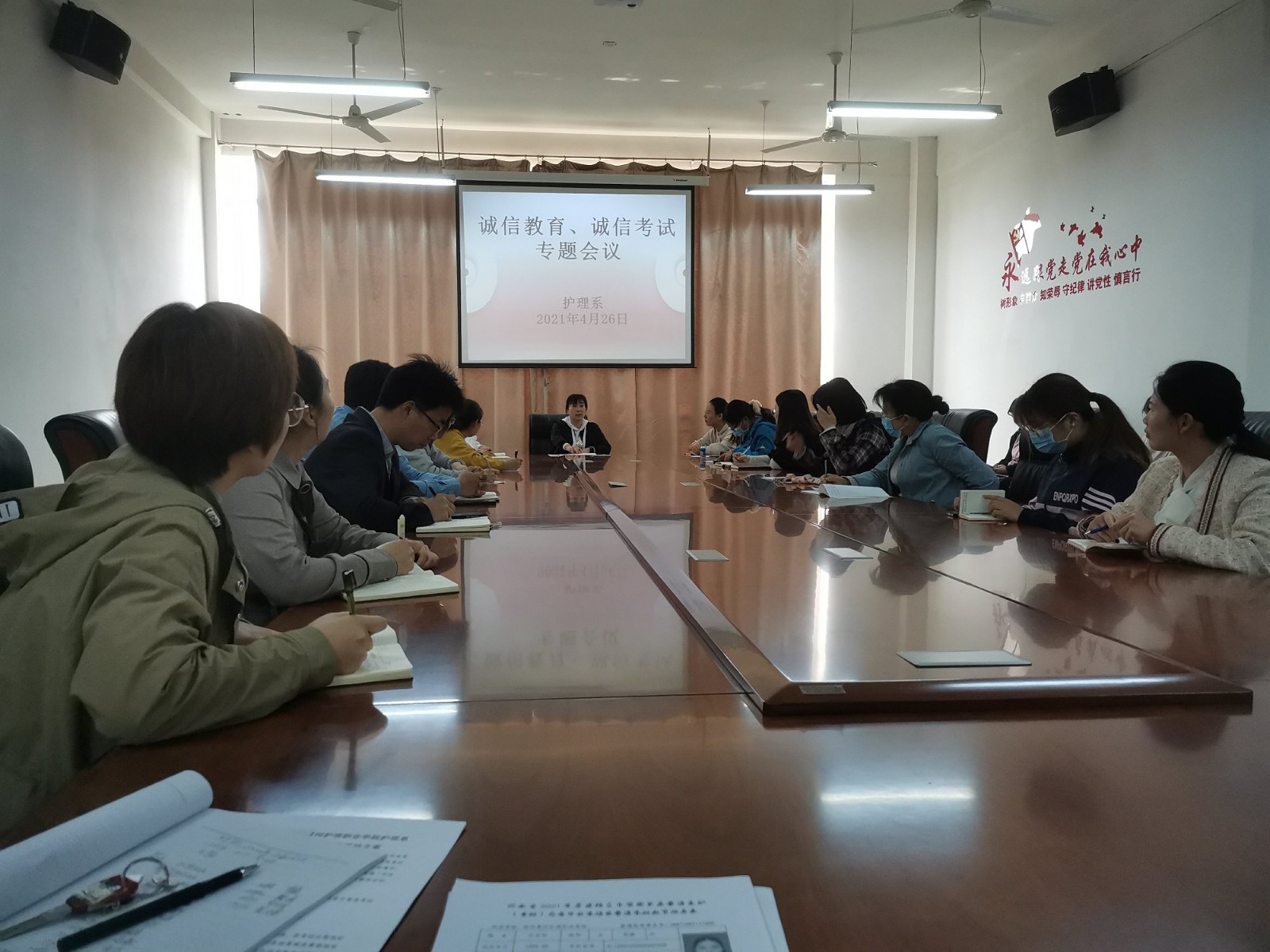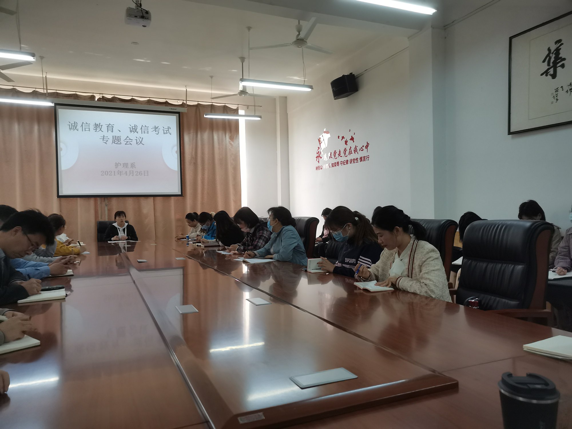 为进一步强化考风考纪教育,培养诚信守纪意识,构建良好的考试秩序,营造公平、公正的良好考试环境,实现“平安高考”目标,贯彻落实河南省招生办2021年“专升本考试安全工作会议”精神,护理系于4月26日针对18、19、20年级召开了诚信教育、诚信考试专题会议。