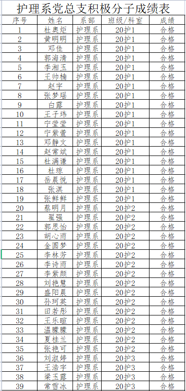 关于护理系党总支第二十四期入党积极分子培训班结业考试成绩合格名单公示