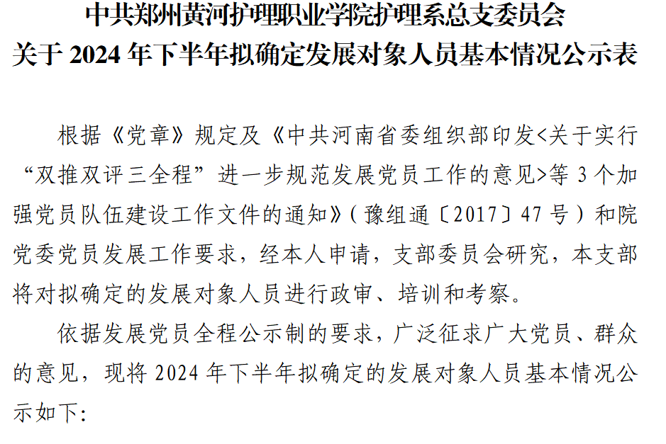 关于2024年下半年拟确定发展对象人员的公示