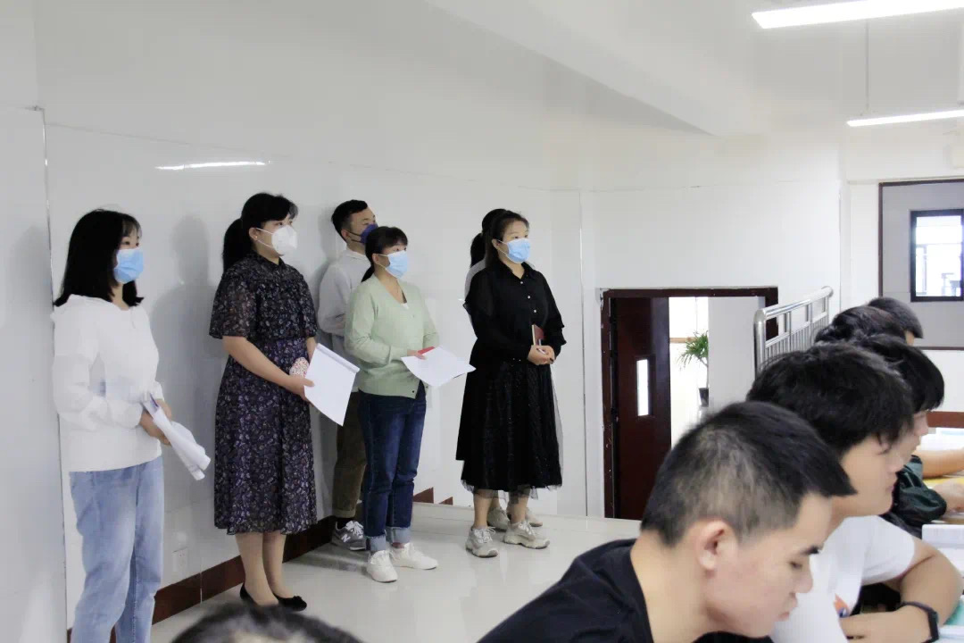 为加强教学管理,规范教学秩序,及时发现和解决教学中存在的问题,确保新密校区学生返校复学后各项教学工作顺利开展,9月26日上午,新密校区线下开课第一天,学院副理事长、常务副院长刘荃带领教务处、护理系、医学技术系、康复治疗系、中专部负责人深入教学一线,对教师到岗与学生出勤、课堂授课、实验(实训)情况及教学设备运行等情况进行了全面检查。