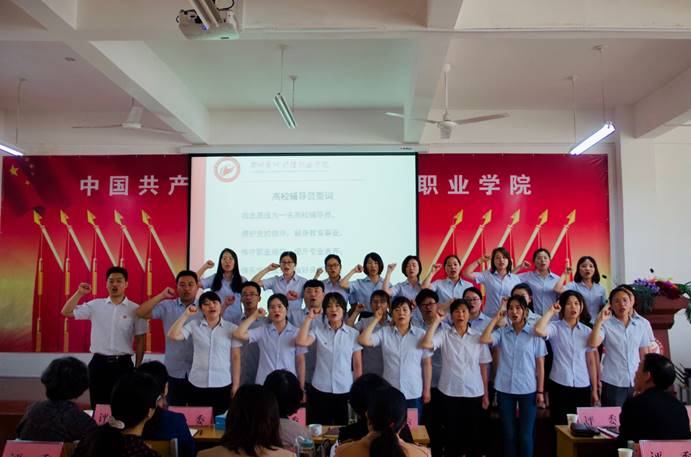 决赛分为谈心谈话、主题演讲两个环节。谈心谈话环节中,各位老师围绕当前学生日常事务管理、校园危机事件应对等主题展开情景模拟,动之以情、晓之以理,倾听学生在学习生活等方面遇到的问题,提出解决问题的办法。主题演讲环节中,各位辅导员用激情饱满的演讲,讲述了自己辅导员工作,肩上的责任、重担以及使命,打动着现场的每一个人。在谈话谈心活动结束后辅导员集体宣誓《高校辅导员誓词》,各位辅导员表示会以高校辅导员誓词精神为引领,认真负责地做好辅导员工作,践行誓词的责任感和使命感。会后校领导和参会领导及辅导员合影留念。