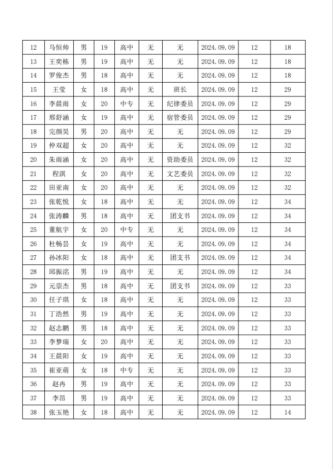 医学技术系总支学生党支部关于第30期确定入党积极分子人员基本情况公示表